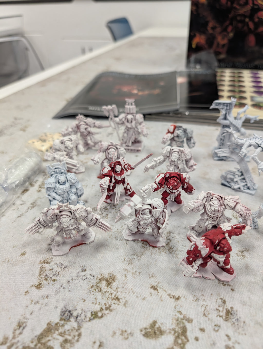 The miniatures have been primed white